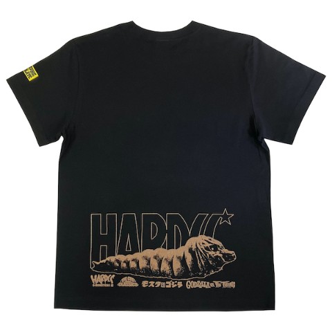 ハードコアチョコレートで実現したモスラTシャツは、贅沢にフロントは成虫、バックで幼虫をプリント。
