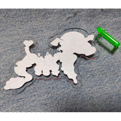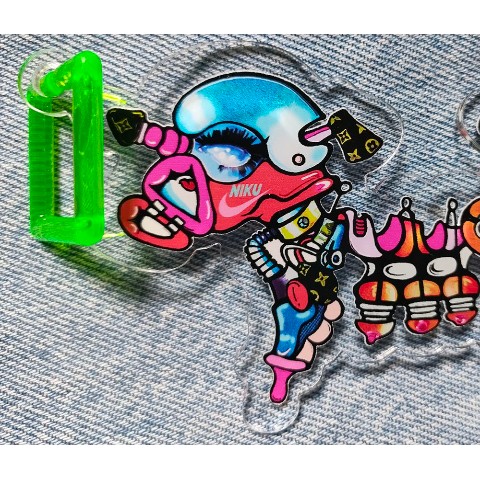 アクリルチャ-ムです。キ-ホルダ-にしてもいいけど、ペンダントヘッドやcapなどにピンでつけるのも可愛いです^^