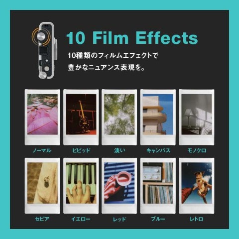 画像エフェクト:レンズエフェクト10種、フイルムエフェクト10種