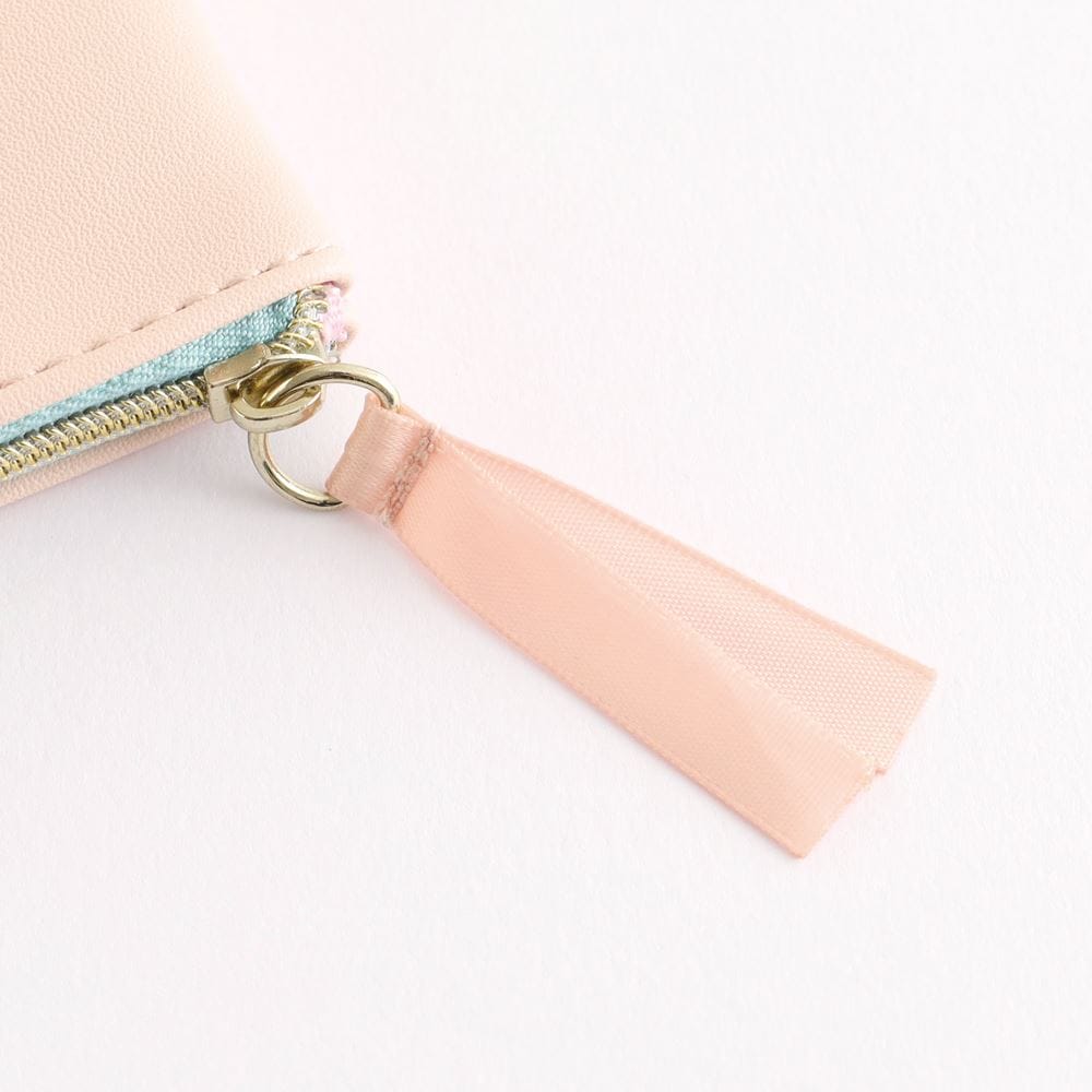 小物をまとめるのにちょうど良いサイズのフラットポーチ。それぞれの動物をモチーフにした刺繍がポイントです。内生地にも動物のパターン柄がプリントされています。