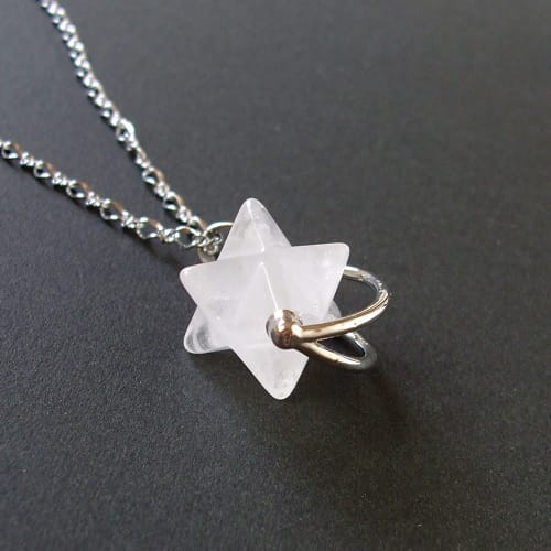 星型八面体のロングネックレスです。天然石(水晶)でできています。