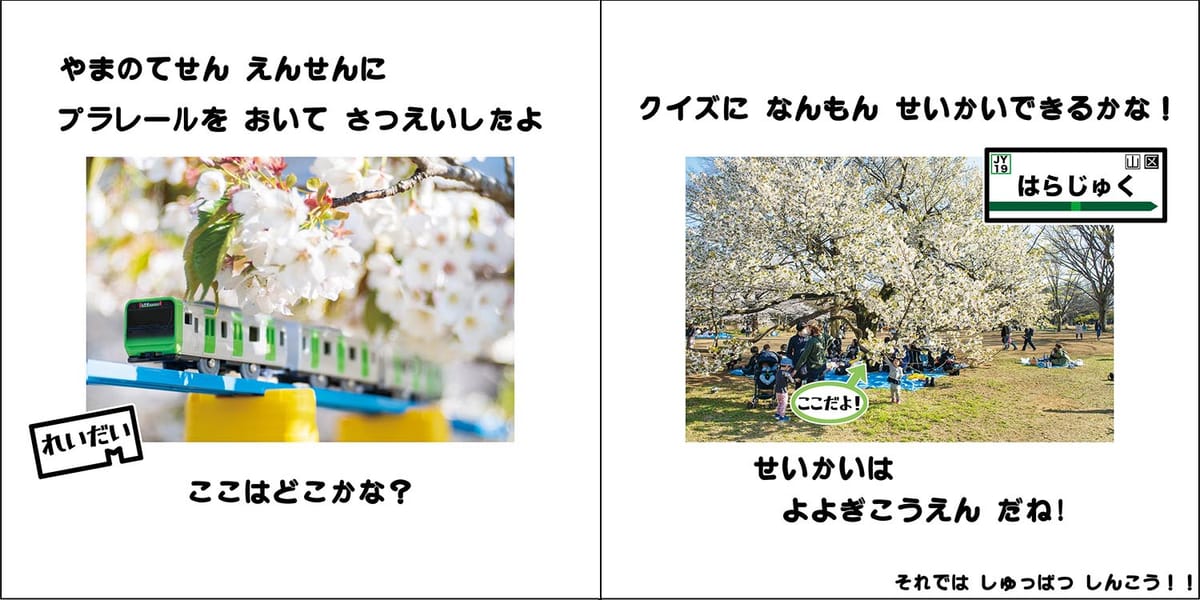 山手線沿線の有名なスポットにプラレール を置いて撮影しました。どこで撮っているかをクイズ形式にしているので、何問正解できるかチャレンジしよう!
