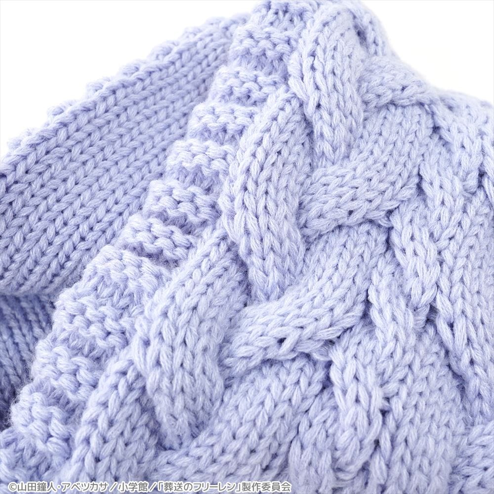 フェルン愛用のマフラー(スヌード)を普段使いしやすいデザインで忠実に再現。設定のオリジナルカラーに染めた糸を使用して独自縫製でアパレルとしての機能性にもこだわりました。