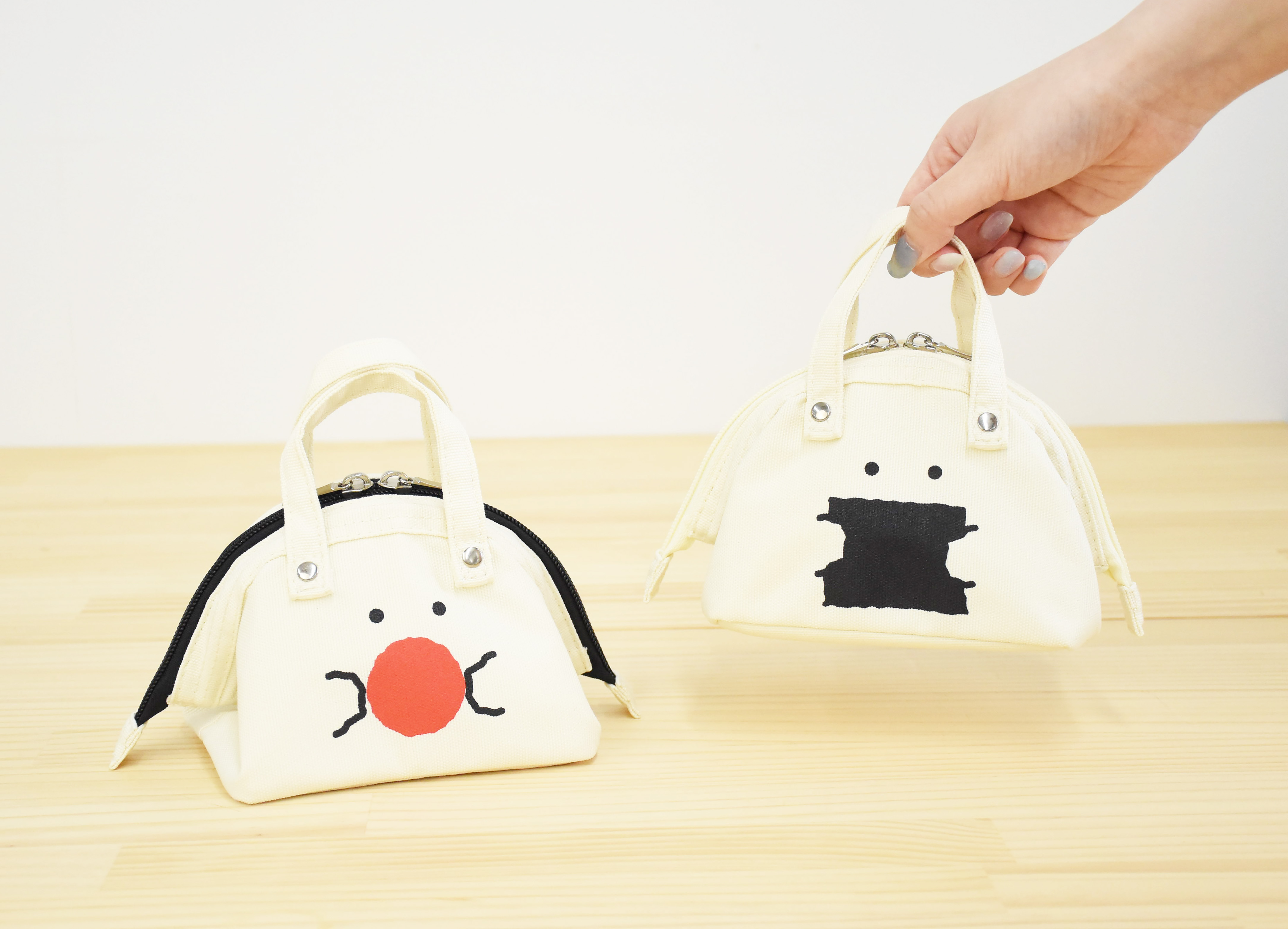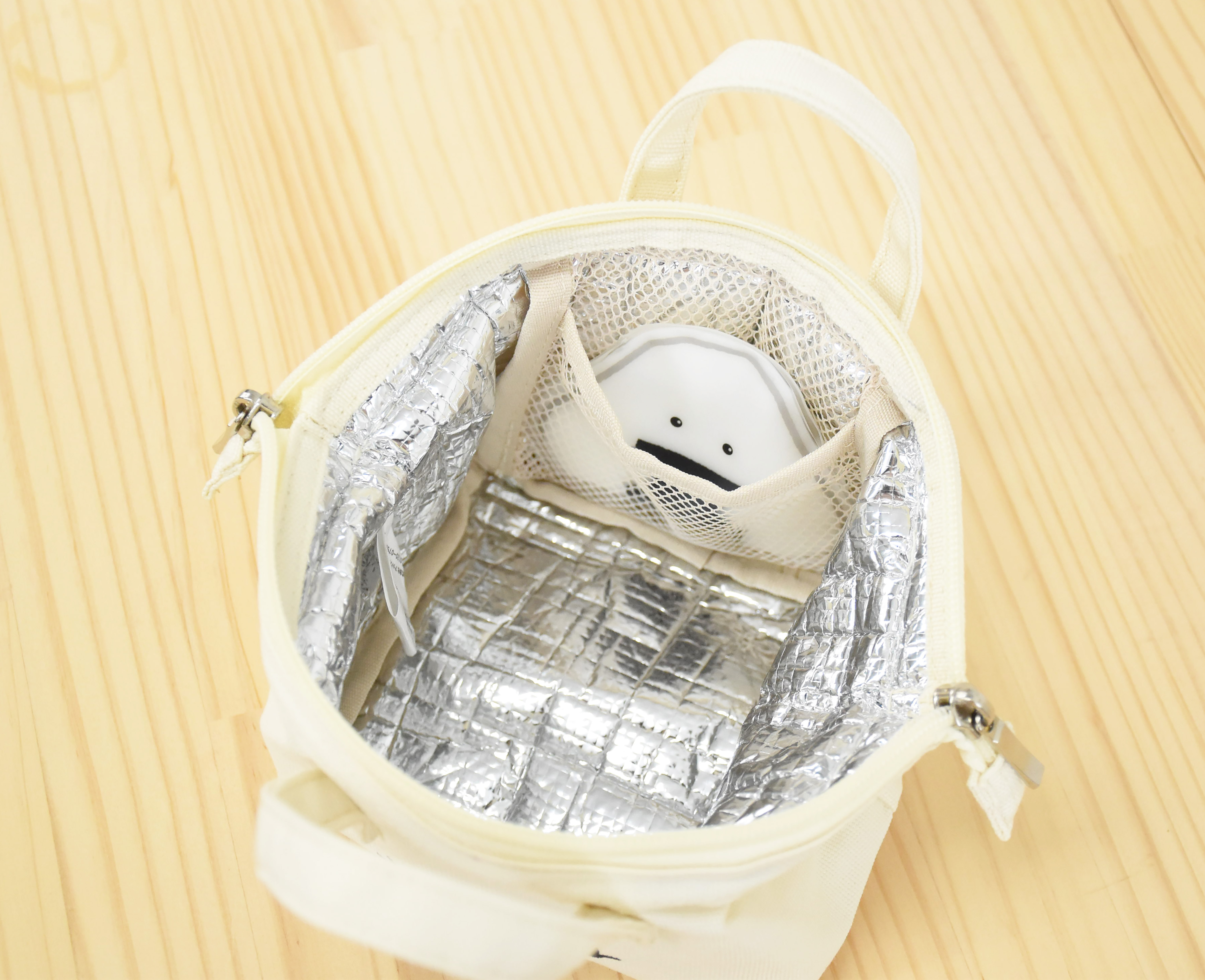 保冷保温補助機能付きバッグ。おにぎりがちょうど2個入るサイズ感、バッグに入れても邪魔にならない便利アイテムです。