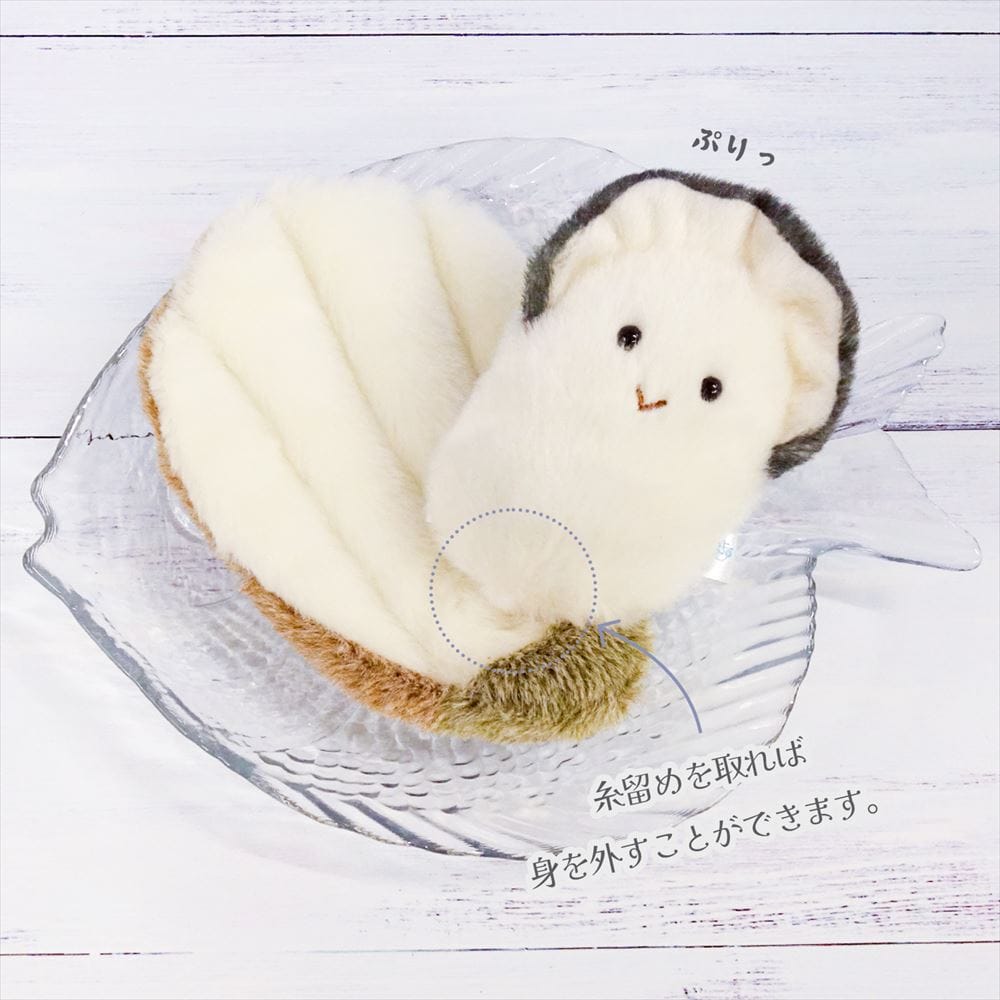 ”さらさらシャーベット生地を使用した、触り心地抜群の「ぽちゃまる」シリーズより、ちょっと珍しい貝のぬいぐるみが登場です!