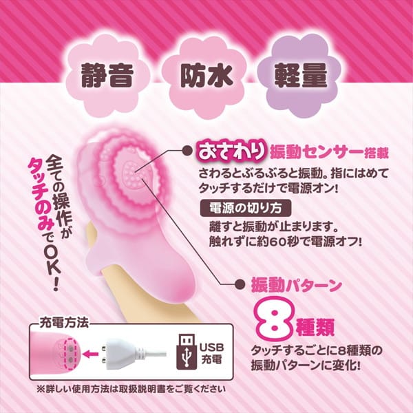 全ての操作はタッチのみでOK!指にはめてタッチする度に振動パターンが変わり離すと止まります!