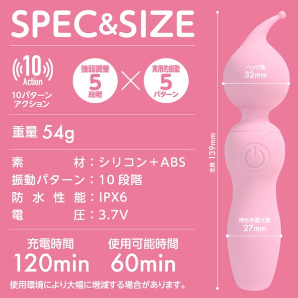 強弱調整5段階と実用性の高い5パターンアクションの10パターン振動。