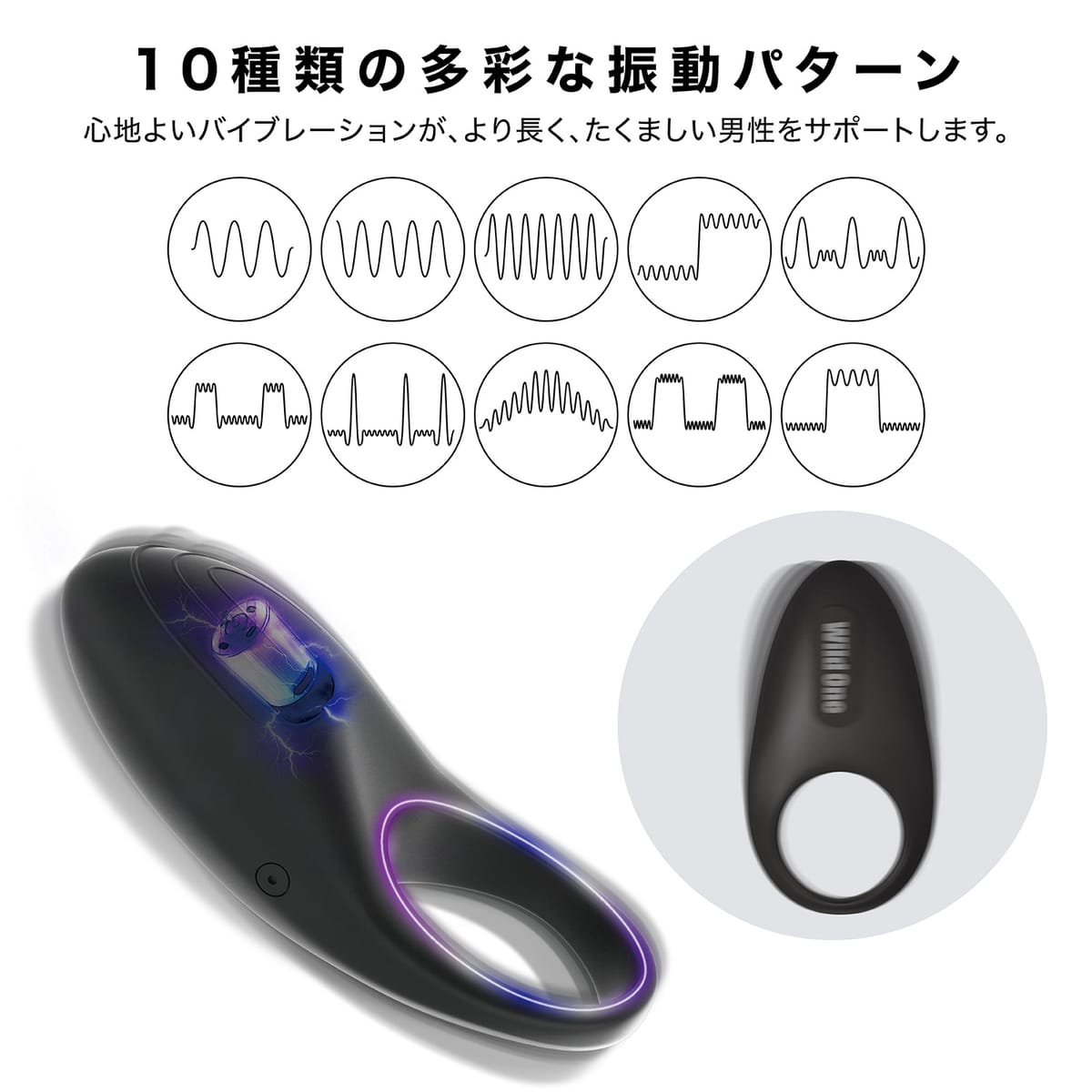 根元への引き締めと、心地よいバイブレーションが、より長く、たくましい男性をサポートします。