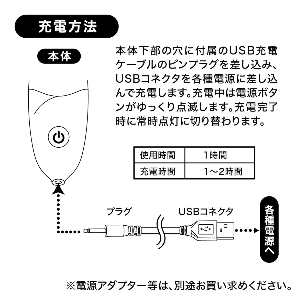 ※電源アダプター等は、別途お買い求めください。