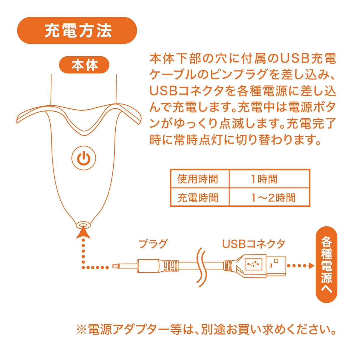2時間のフル充電で、たっぷり1時間楽しめるUSB充電タイプ。