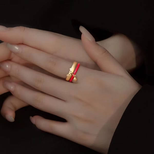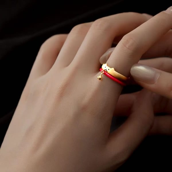 【#kawaiiiii!】ゆるかわ猫の2連リング(ゴールド&レッド)
