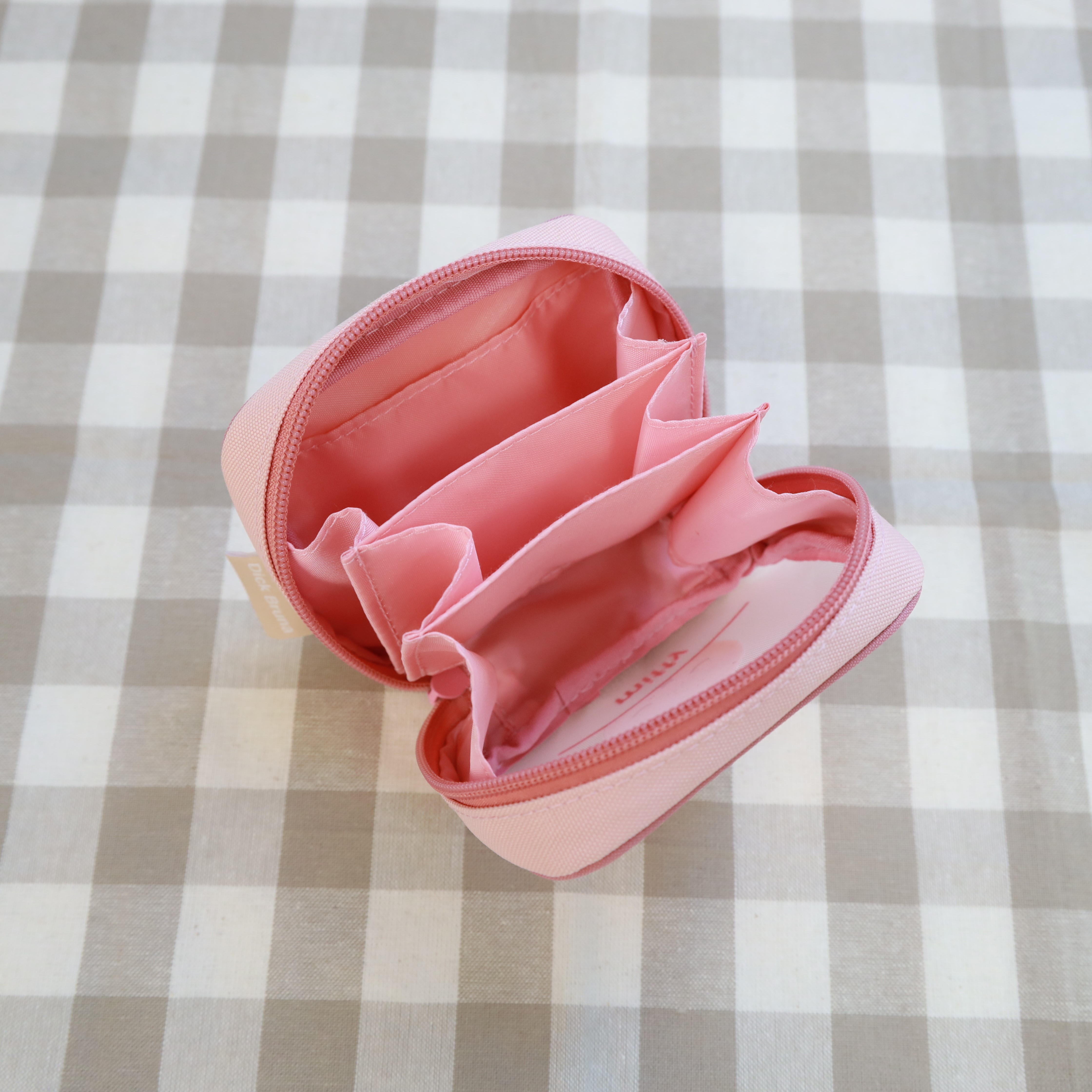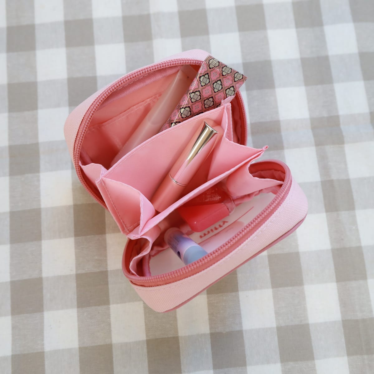 チョコレートのような色合いがかわいい、スイートカラーシリーズ。がばっと開いて取り出しやすいじゃばらポーチです。大きいスペースが3か所と、フラットなポケットが1か所で、小物を分けて収納できます。中身が見えるメッシュ素材で、使い勝手も抜群です。