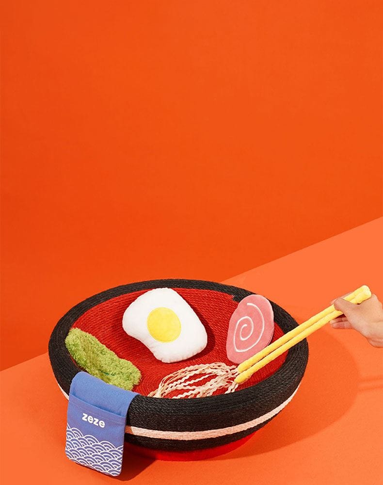 この一杯のラーメンベッドにはたくさんのトッピングが付いており、それぞれがペットのおもちゃとして機能し、幸福と喜びをもたらします。