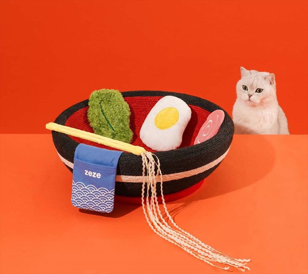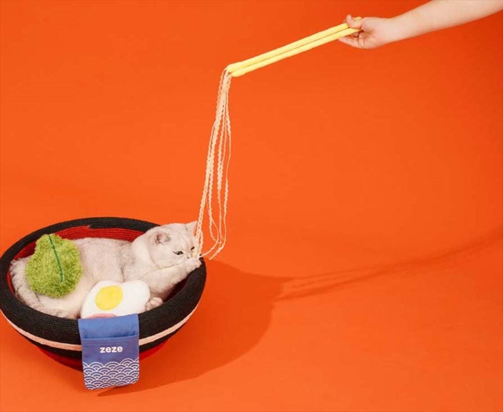 またこのラーメンペットベッドは、耐久性があり引っ掻きに強い天然サイザル麻素材で包まれているのが特徴で、爪を傷つけることなく存分に遊んでリラックスすることができます。