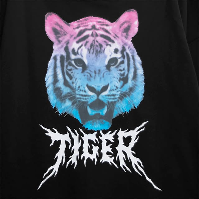 オーロラグラデの虎と燃え盛る炎が融合した