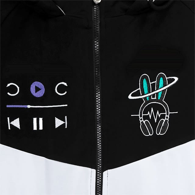 【LISTEN FLAVOR】 ミライから来た うさ耳ジャージパーカー WHITE×BLACK