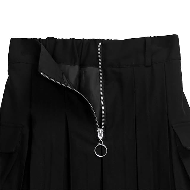 【LISTEN FLAVOR】 カーゴポケット プリーツスカート BLACK