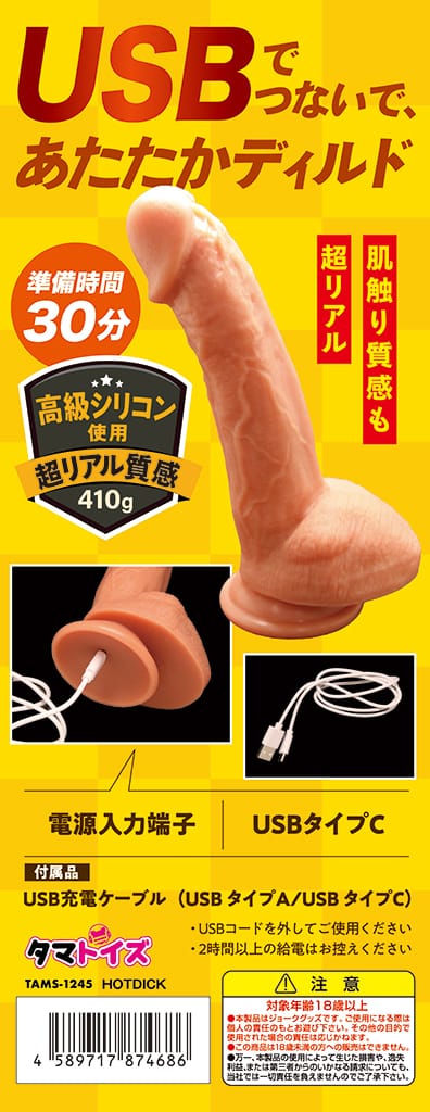 USB給電方式ホットディルド 大きくて あたたかくて 30分で準備OK! 全長200mm 重量410g 人肌で感じたいビックディルド USBでつないで、あたたかディルド 高級シリコン使用 大きさと形が理想的なデイルド 柔軟性とコシのある満足感溢れるディルド 肌触り質感も超リアル 強力大型吸盤付き 30分で人肌に温まる USBコードを外してご使用ください 2時間以上の給電はお控えください 電源入力端子:USBタイプC USBケーブル付属品:USB タイプA/USB タイプC
