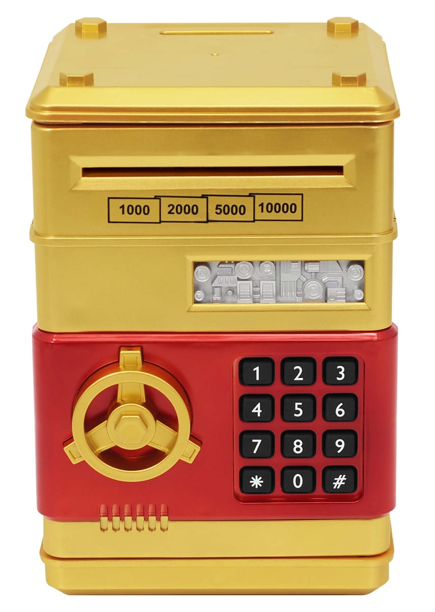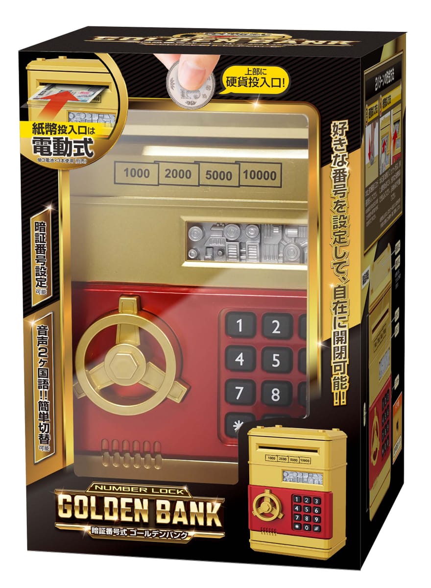 硬貨と紙幣が投入可能で、紙幣投入口は電動式の貯金箱です。
