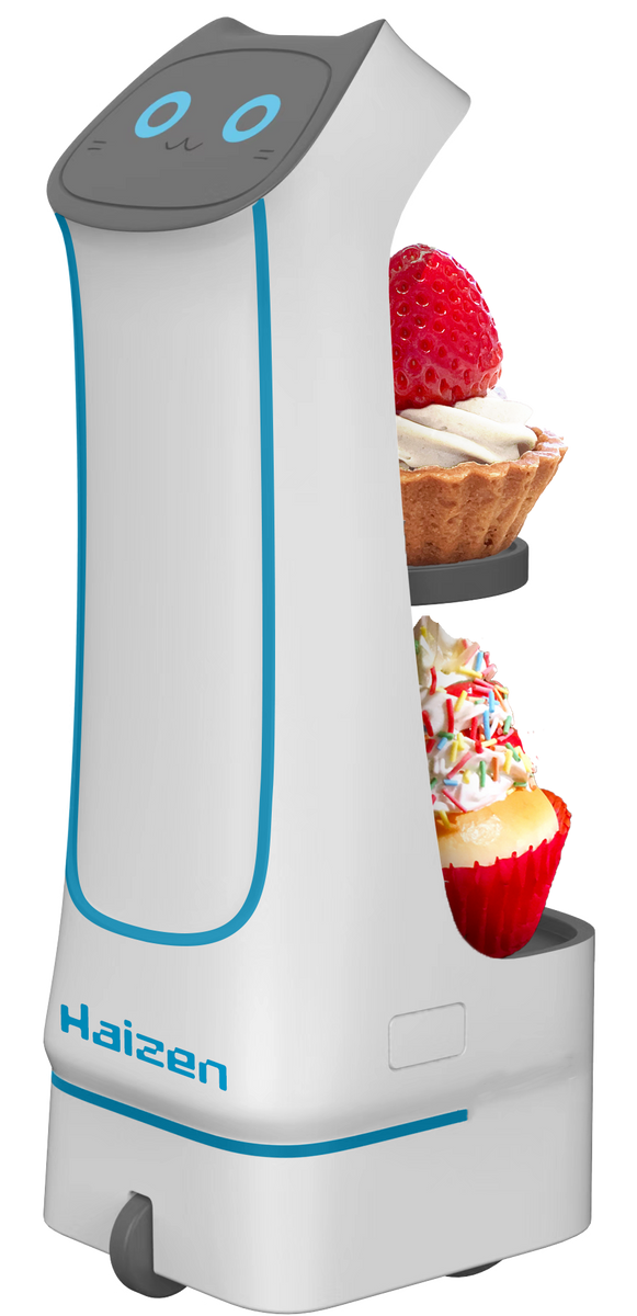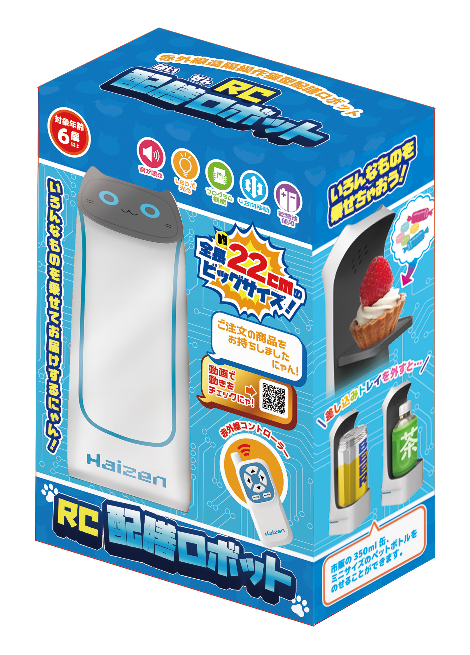 全長22cm、あのファミレスで大人気の配膳ロボットがおうちで遊べる!おしゃべりしながら前後左右に動きます。トレーを外すと缶やミニペットボトルも運べます。30パターンの動作を記憶するプログラム機能付き。