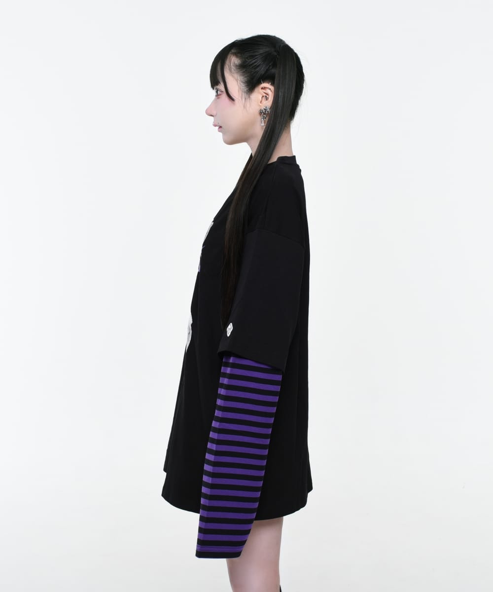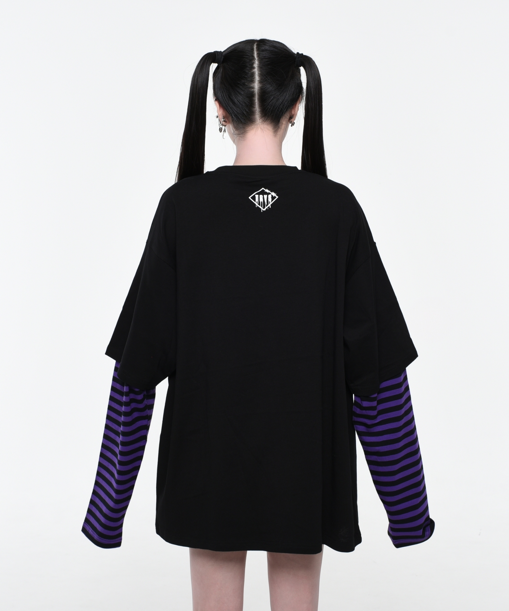 【TRAVAS TOKYO】くまプリントレイヤードボーダーL/S Tee【Black/Purple】