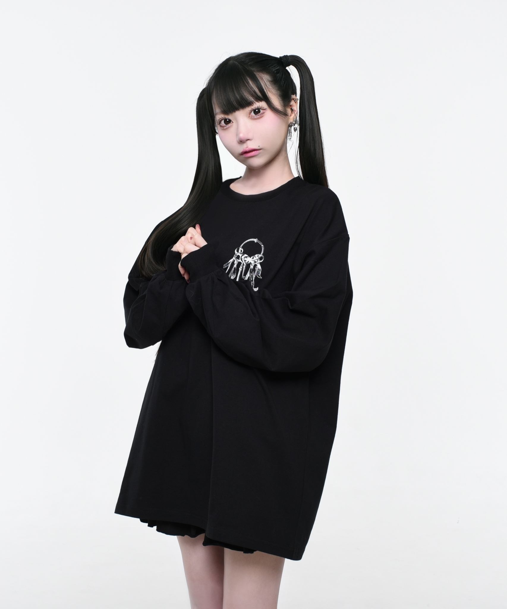 パフスリーブデザインの袖とリボンにハートの形をした鍵&天使のグラフィックプリントと可愛らしいデザインに仕上げました。