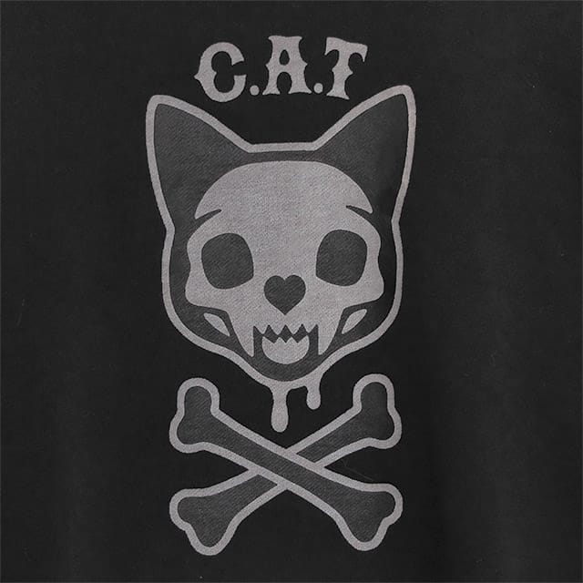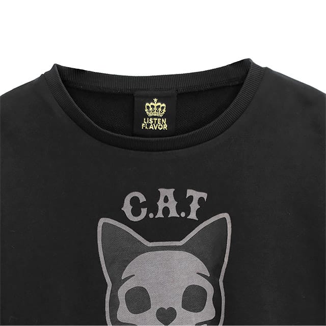 【LISTEN FLAVOR】スカルキャット ピグメントプルオーバー BLACK