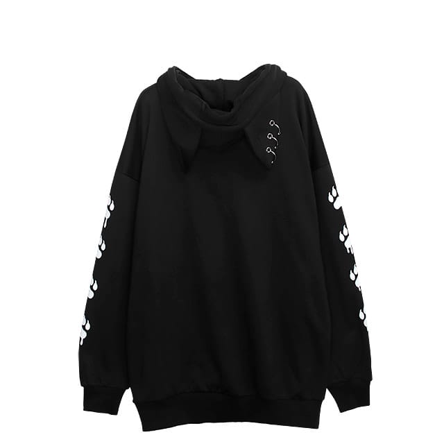 ピアス付きの猫耳と、袖の肉球で