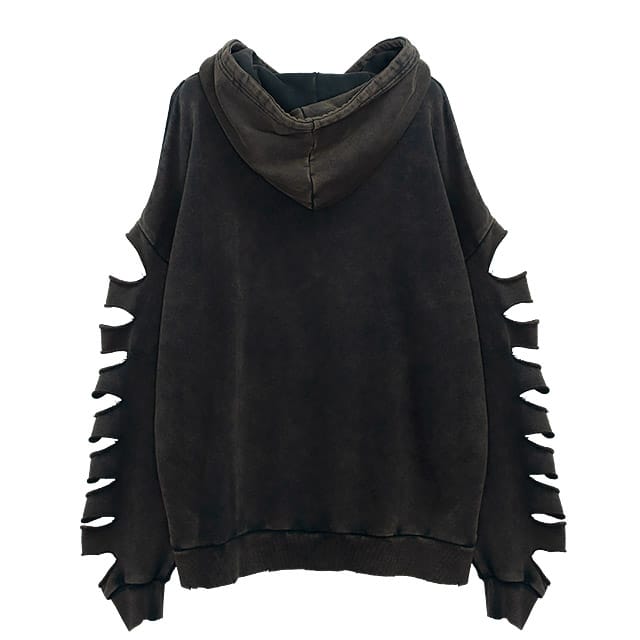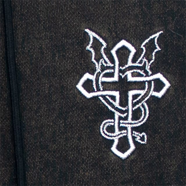 【LISTEN FLAVOR】誘惑の十字架 ダメージパーカー BLACK