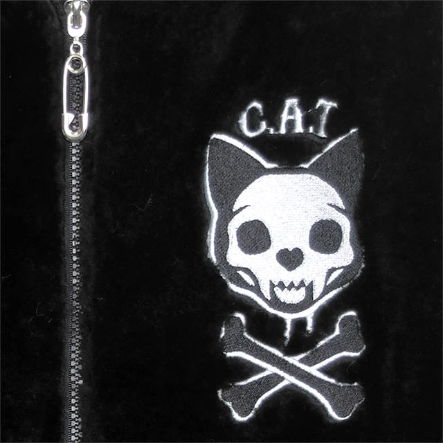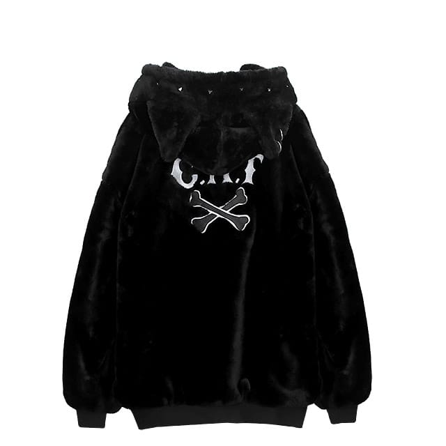【LISTEN FLAVOR】猫耳スカルキャット ファーブルゾン BLACK