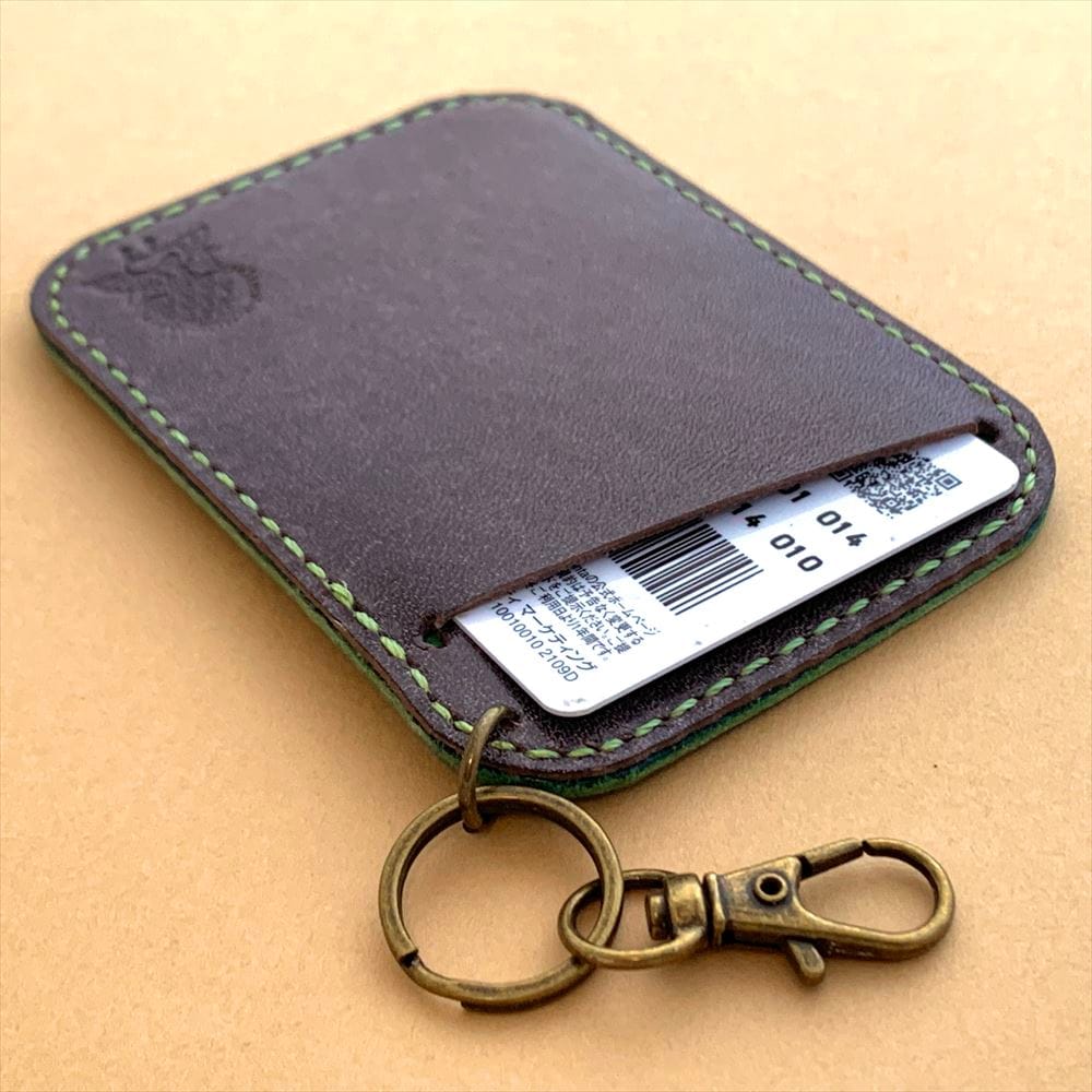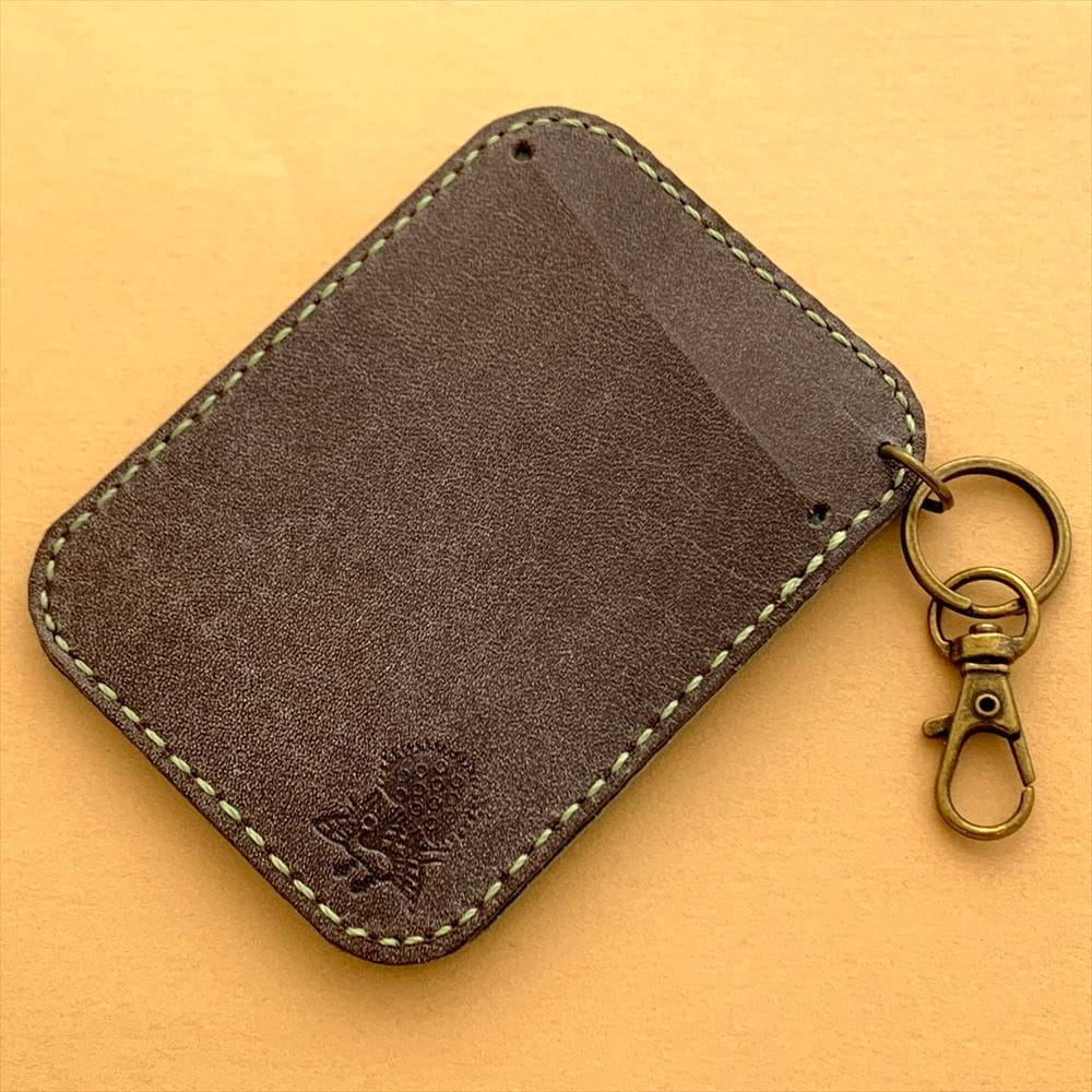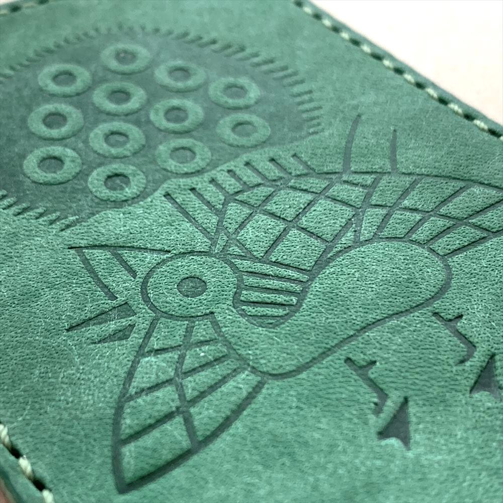 本革を手縫いで仕上げたイーソー柄のパスケースです。イーソーは革に刻印されており、実際の麻雀牌同様の手触りも楽しめます。裏面には小さなイーソーのワンポイント刻印も入ってます。