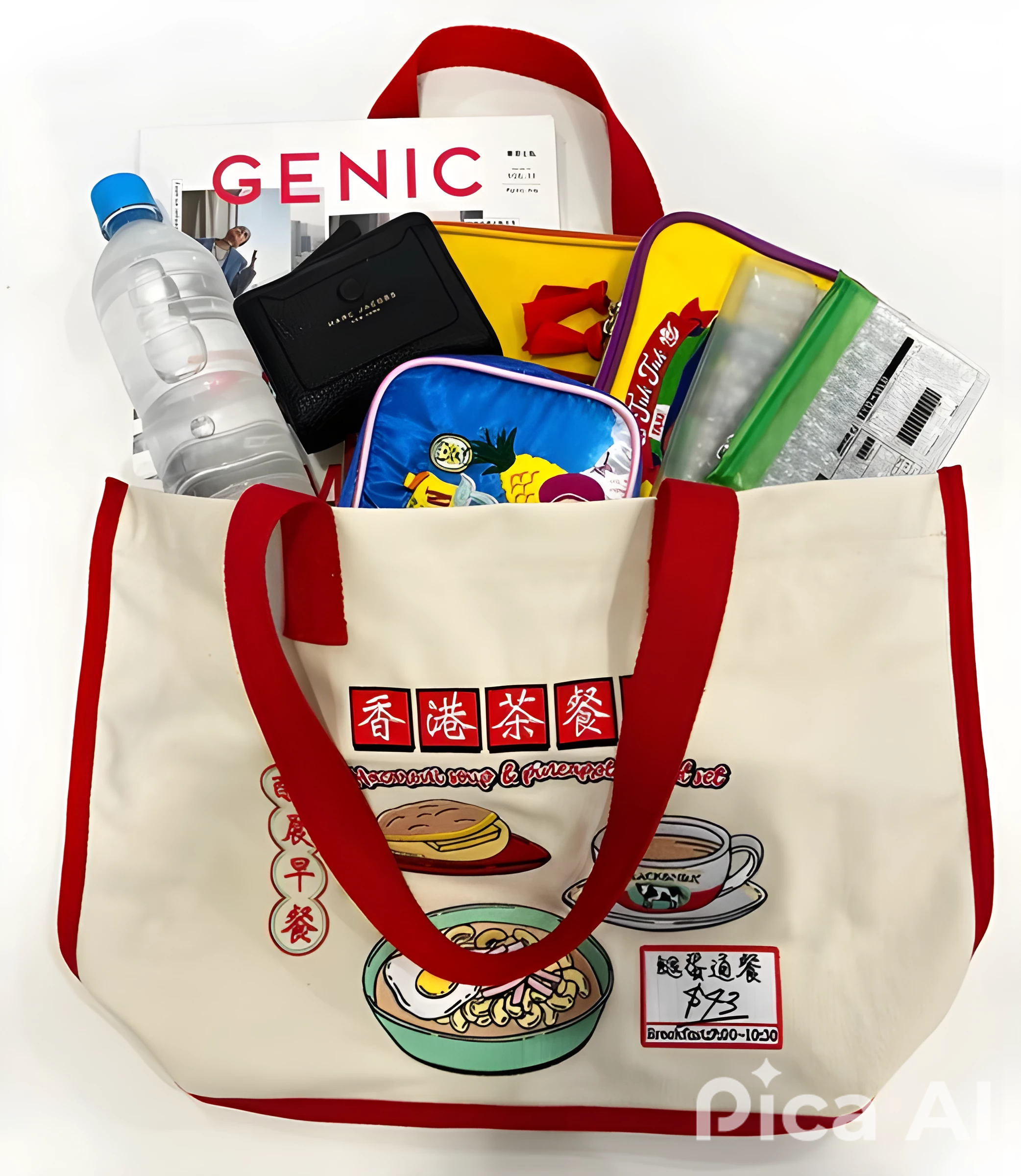 食堂が貼り出している宣伝広告のようなデザインに仕上げたトートバッグ
