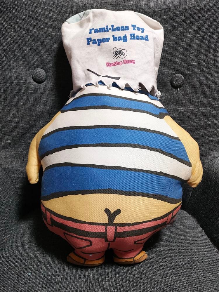このアニメをクッションtoy化したのだけど、今回はパパのキャラクター(paper bag head)のみのセールです^^