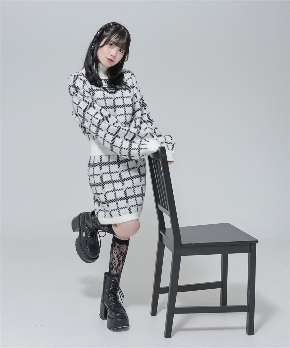 ダブルジャガード仕様のチェック柄ニットワンピースです。