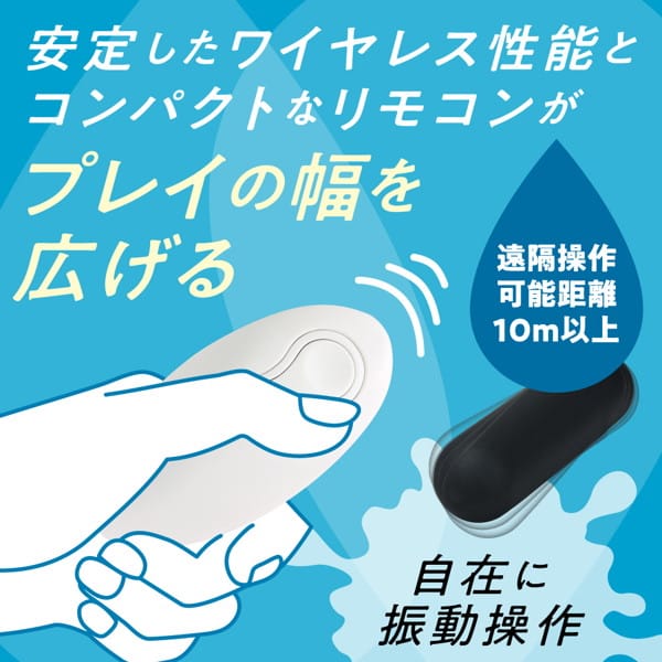 完全防水×ワイヤレス×強力振動×バレない超小型サイズが実現する自由で安全な遠隔プレイ。触り心地を追求した滑らかなマット素材のローターはわずか20mmの直径に全長75mmのどこにでも忍ばせやすい超小型サイズ。しかも静音設計だからよりスリリングなプレイが楽しめます。IPX7の高レベル防水だから水に浸けても大丈夫。使用後もしっかり洗えるから衛生的に長くご使用頂けます。高性能マイクロモーターによって実現した上質な高速振動が絶妙な快感を演出します。30分の充電で最大45分の連続使用が可能(使用環境により大幅に増減します。)実用性の高い振動を10パターン搭載。水に強く、遠くでも操作が可能な高性能ワイヤレスローター。