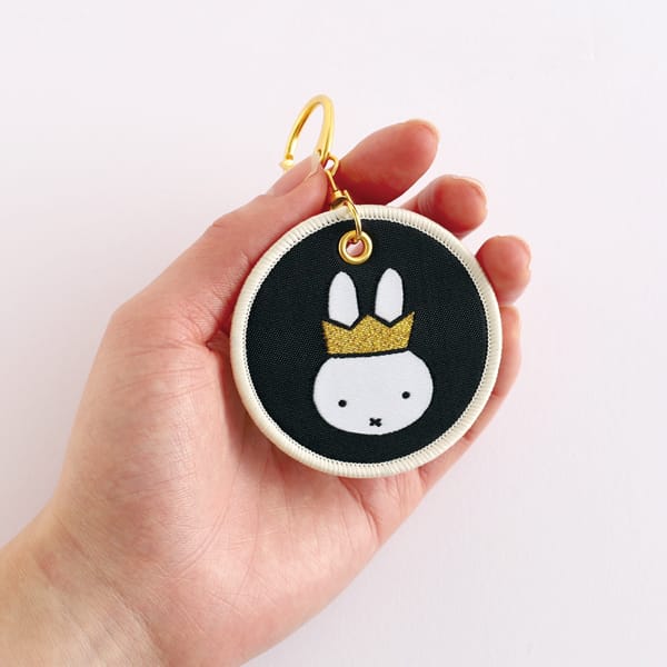 王冠部分に金糸を使用した、ソフトな手触りのキーホルダーです。