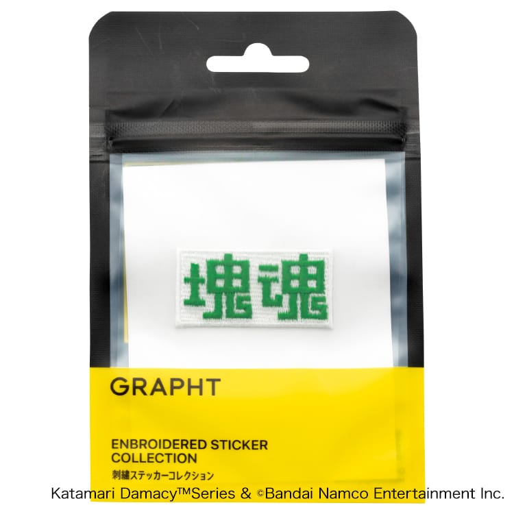 「塊魂」タイトルロゴを始め、ゲーム内でも印象的なキャラクターの王子、王様、塊をそれぞれ刺繍ステッカーで再現。