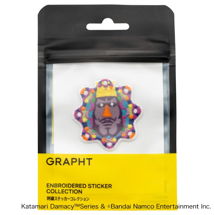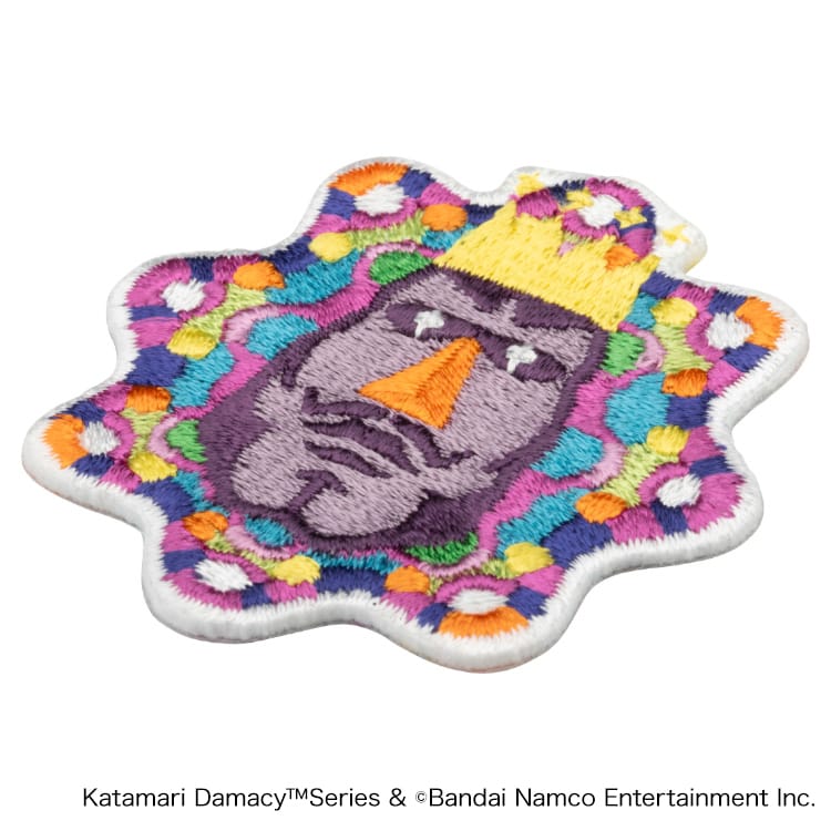 「塊魂」タイトルロゴを始め、ゲーム内でも印象的なキャラクターの王子、王様、塊をそれぞれ刺繍ステッカーで再現。