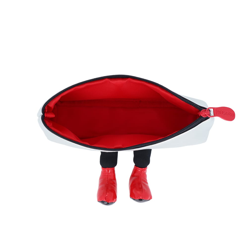 両足がぷらんとついたユニークなペンケースです。足を伸ばして座る姿はどことなく可愛いだけでなく、スマホをおさえたりペンを置いたり、何かとお役に立ってくれます。底面のロゴデザインは滑り止めにもなるシリコーン印刷です。
