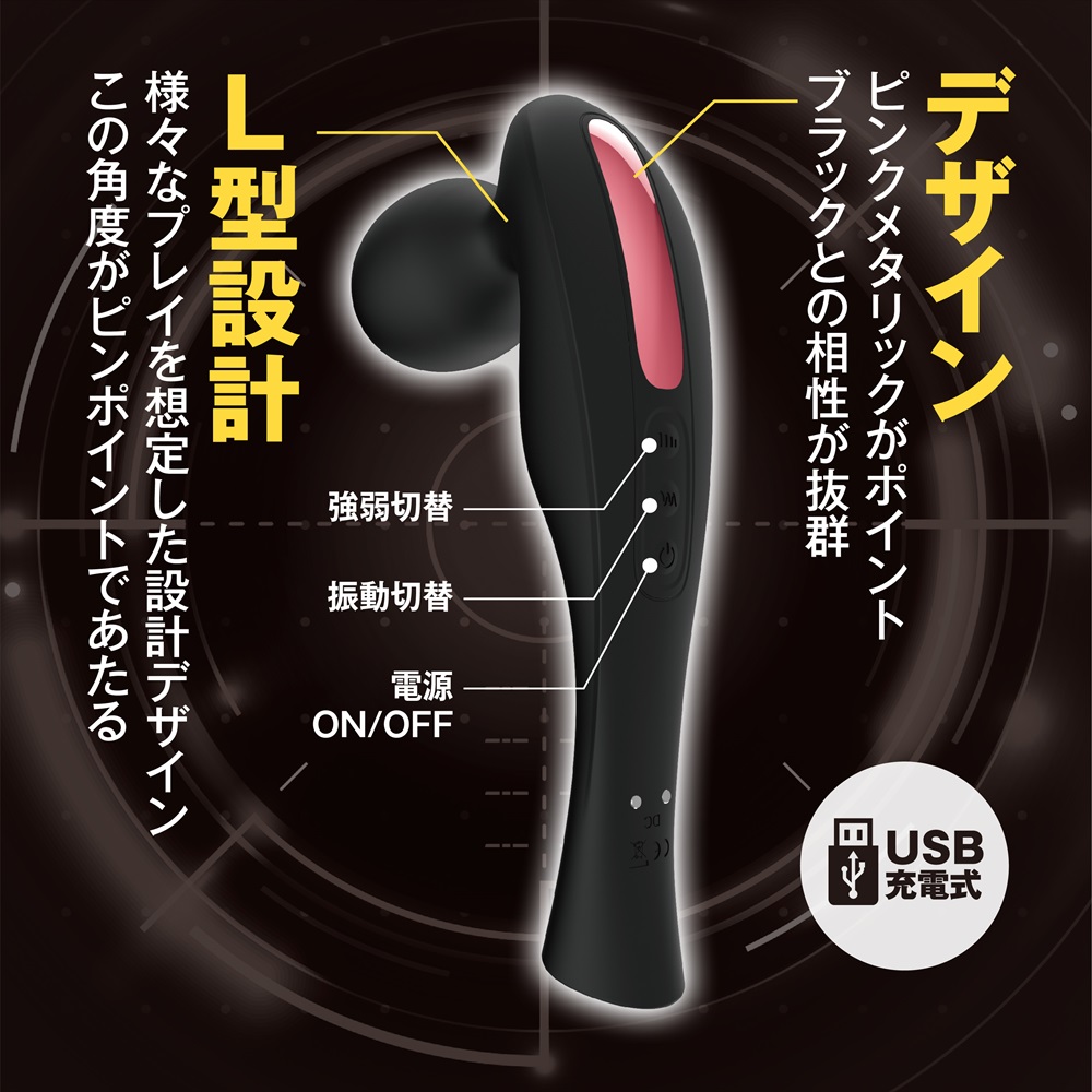 圧倒的な160パターンのアクション数を誇り、L字の孫の手形状がどんな体位からでもピンポイントに刺激。全体をシリコンカバーで包まれているためヘッドは柔らかく、お風呂で使えて丸洗いも可能。マグネット式の付属充電コードで充電できます。重量も160gととても軽く取り回しやすい為、長時間プレイにも最適。