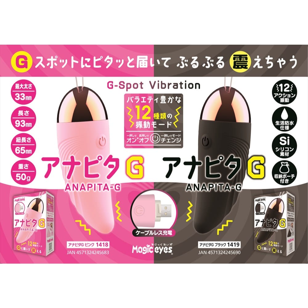 シリコンの柔らかな先端がG●ポットにピタッと届いてぶるぶる震えちゃう!12アクション振動を搭載したケーブルレス充電のお手軽ローター。生活防水仕様の為、清潔に保管出来、収納ポーチも付属しています。操作もボタン一つで電源とモードチェンジが可能。