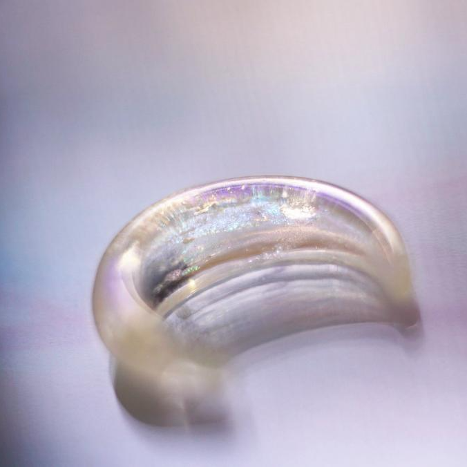 冬の夜空に美しく青白い輝きを放つ上弦の月。世界にひとつのガラスのペンダントにお作りしました。円形に近い三日月のフォルムです。無色透明をベースに美しい煌きを。暗闇では神秘的な光を放ちます。さまざまな表情をお楽しみいただけます。