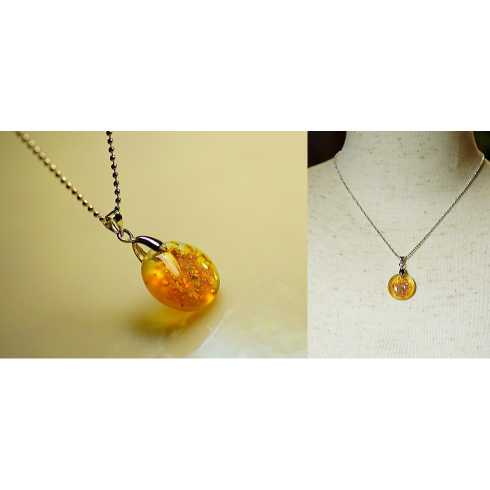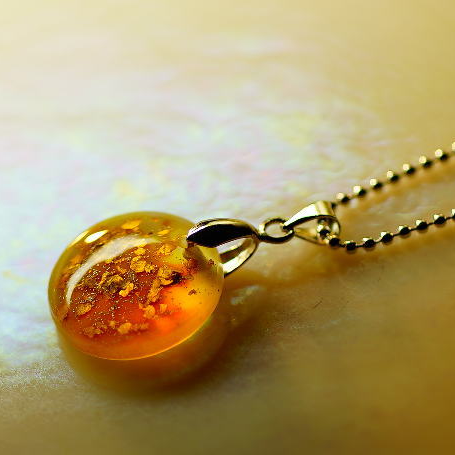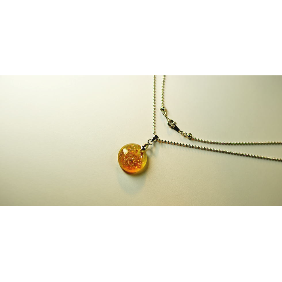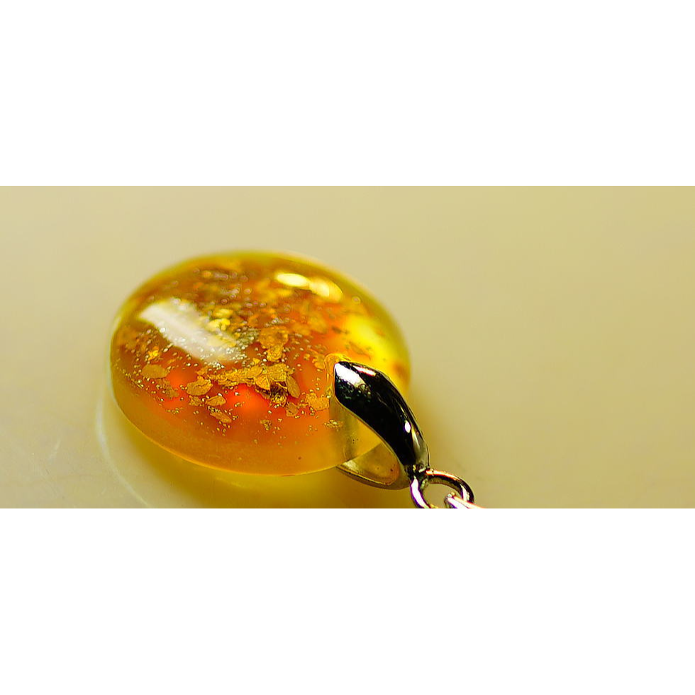 朝靄に包まれるオレンジに煌く月。そんなイメージでお作りした円形ペンダントです。内部に金箔と純銀パウダーをちりばめた素敵な煌きをお楽しみいただけます。
