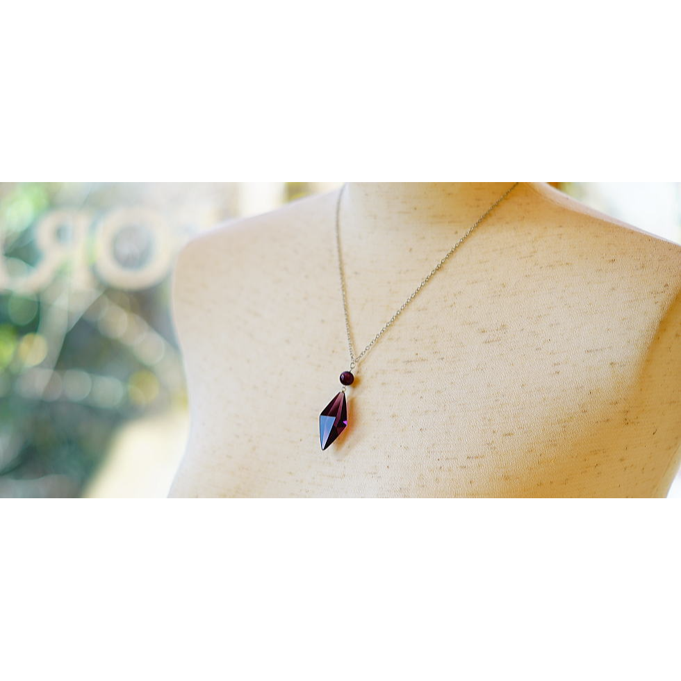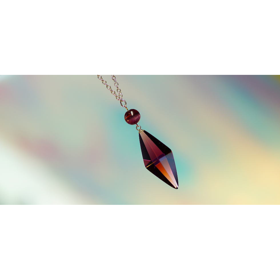 魅力的な八面体「Standard Dreamblue」とガラスビーズを組み合わせたスタイリッシュなペンダント