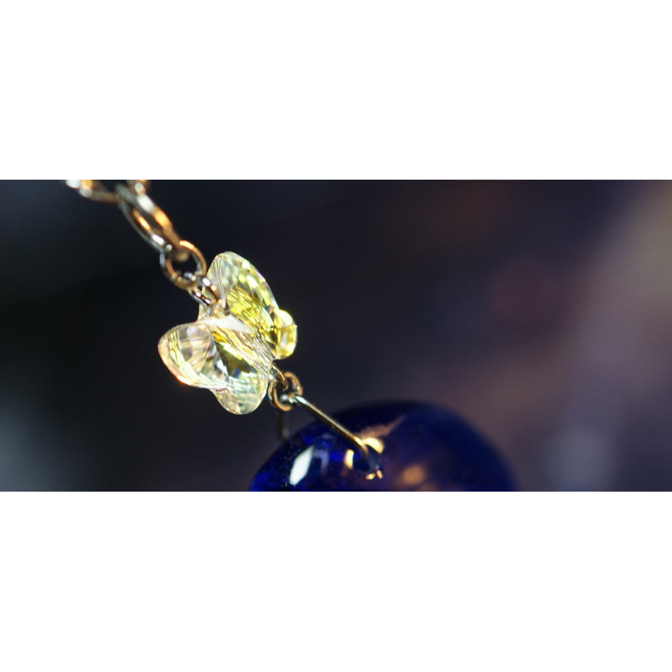 アメリカンガラス /約36×14×8mm /黄色系青系青紫系 / マーブル加工 /フィガロチェーン シルバー色 50cm 蝶のチャーム付 /-