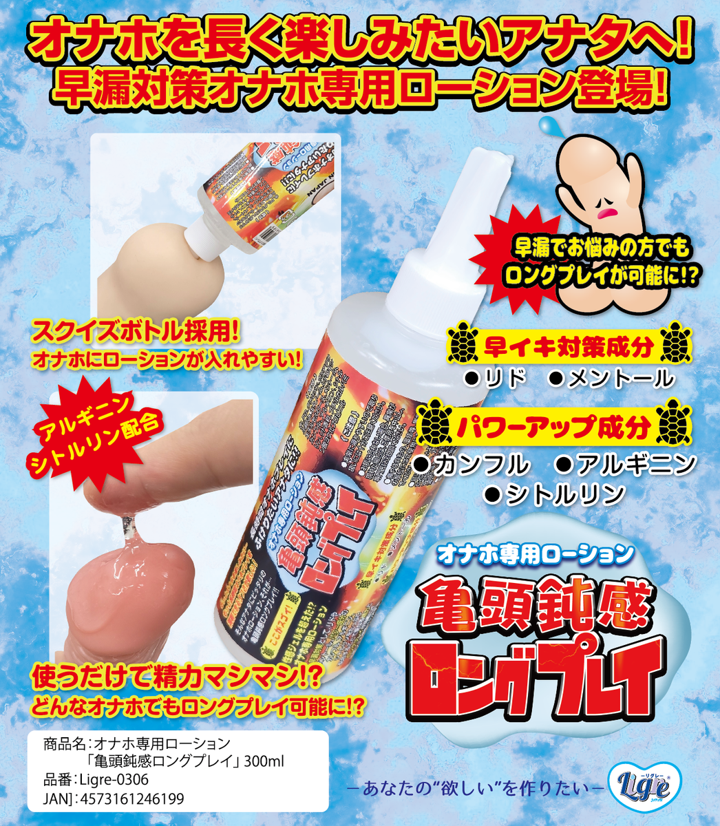 オナホ専用ローション「亀頭鈍感ロングプレイ」の登場です!