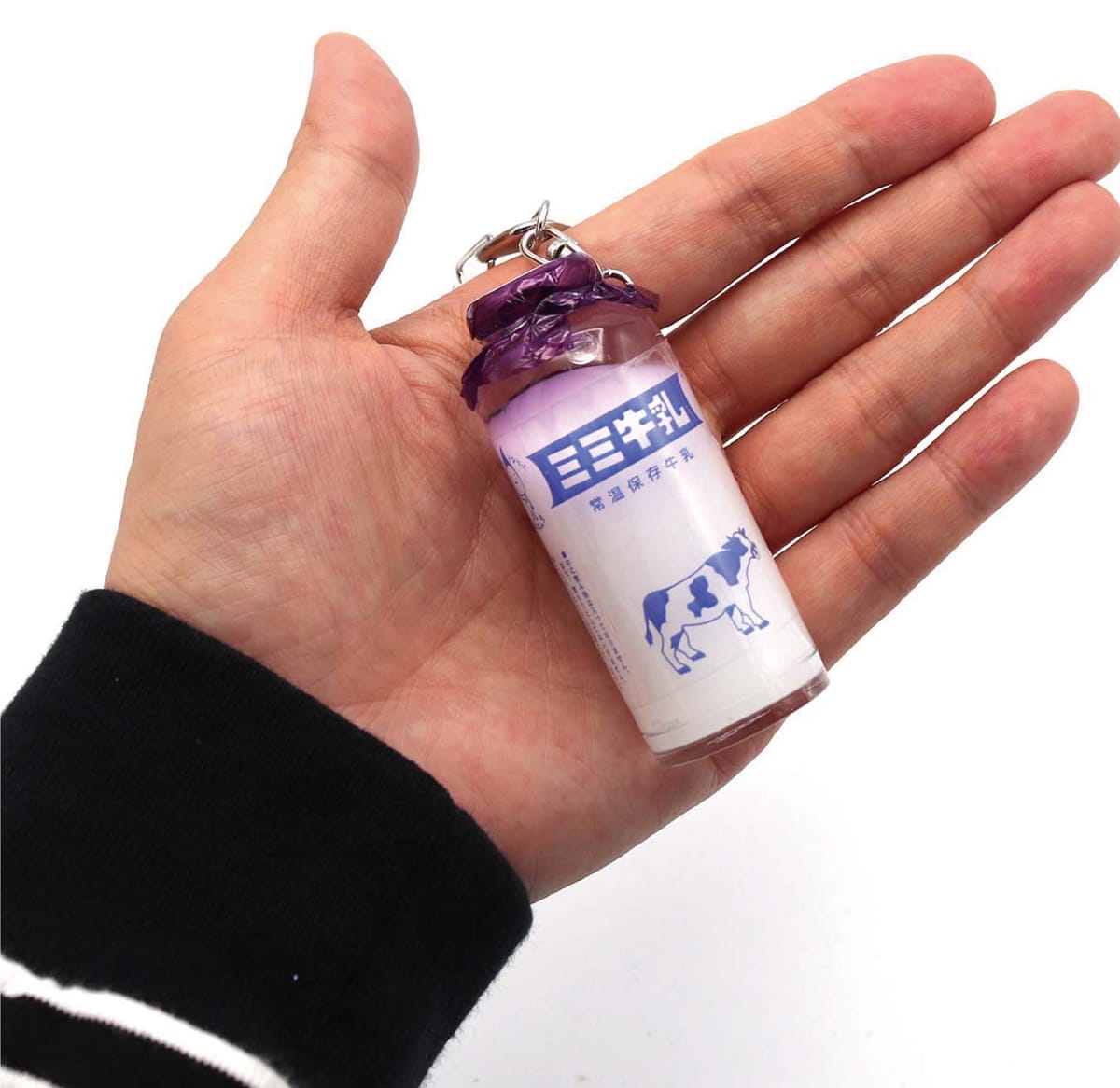 まるで牛乳が入っているような、ゆらゆら揺れるリアルな牛乳瓶のキーホルダー