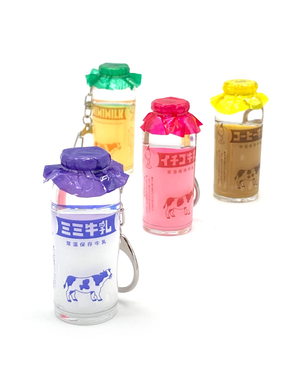 まるで牛乳が入っているような、ゆらゆら揺れるリアルな牛乳瓶のキーホルダー
