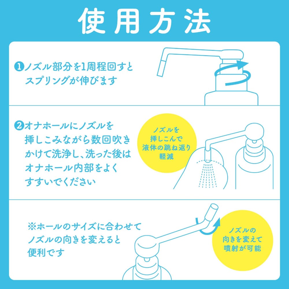 HATOPLAと国内シェアNo.1ローションブランドペペによるオナホール洗浄液が水溶性ローション向けのスプレーボトルタイプで登場!いつも使用するオナホールを銀イオン・柿タンニンを配合した安心安全の国内生産&国産素材でやさしく除菌&消臭!強力な霧状噴射で広範囲・内部の奥までしっかり届き素早く浸透、イオンの力で水溶性ローションのヌルヌル汚れを固めて落とし、洗い流しも簡単です♪ノズルを挿しこんで液体の跳ね返りを軽減、穴の小さいホールでも使いやすくなりました。下向きで使いづらい時でもノズルの向きを変えて噴射が可能なので、大型ホールなどの大きいサイズでも向きの負担が少ない状態で使用が可能です。内容量が350mlと大容量となり、たっぷり使えるようになりました。※水溶性ローションとは《水》を主成分としております。