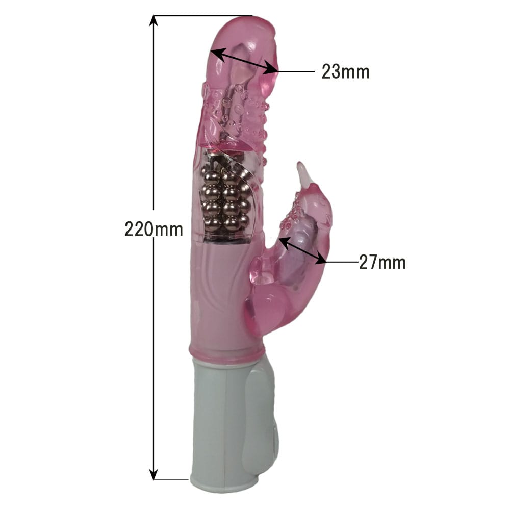 24個のメタルボール入りの高速回転電動バイブ!弾力のある素材で挿入感抜群、超強力6Vパワーで高速回転を実現、内壁をガンガン刺激し快感間違いなし!子バイブは定番触角で敏感部分を強烈に刺激!なによりも電池を入れればすぐに使える楽々リモコンBOX。無段階調整スイッチでお好みの速度でお楽しみいただけます。単四電池4本仕様(アルカリ電池推奨)静音タイプ